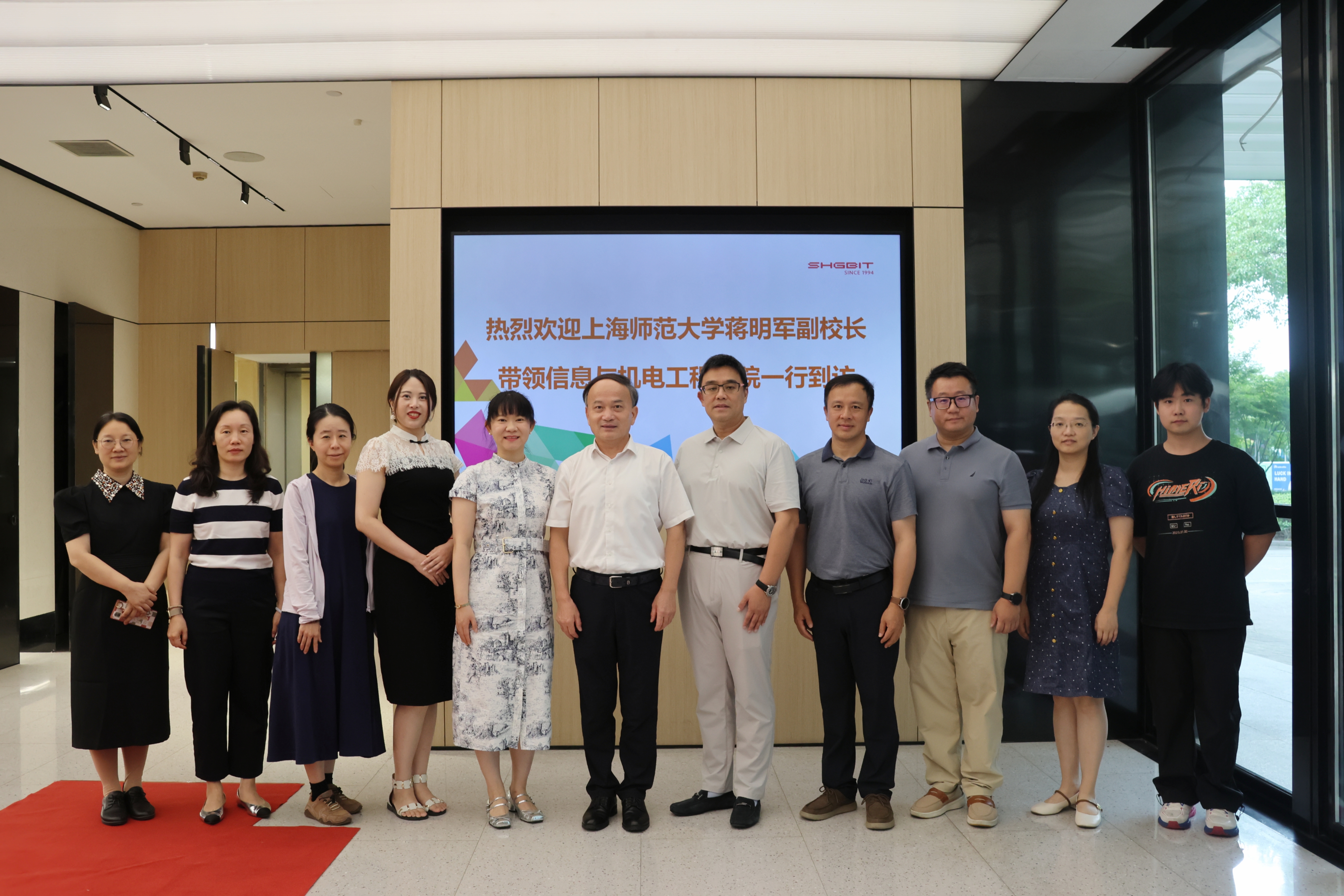 2025年7月29日,上海師范大學副校長蔣明軍率信息與機電工程學院黨委書記陳曉虹、副院長潘建國等學院領導及師生代表一行,蒞臨金橋信息總部參觀交流。雙方就深化校企合作、拓展學生實習就業(yè)、探索AI領域協(xié)同創(chuàng)新以及推進黨支共建等議題進行了深入探討,共謀未來發(fā)展。